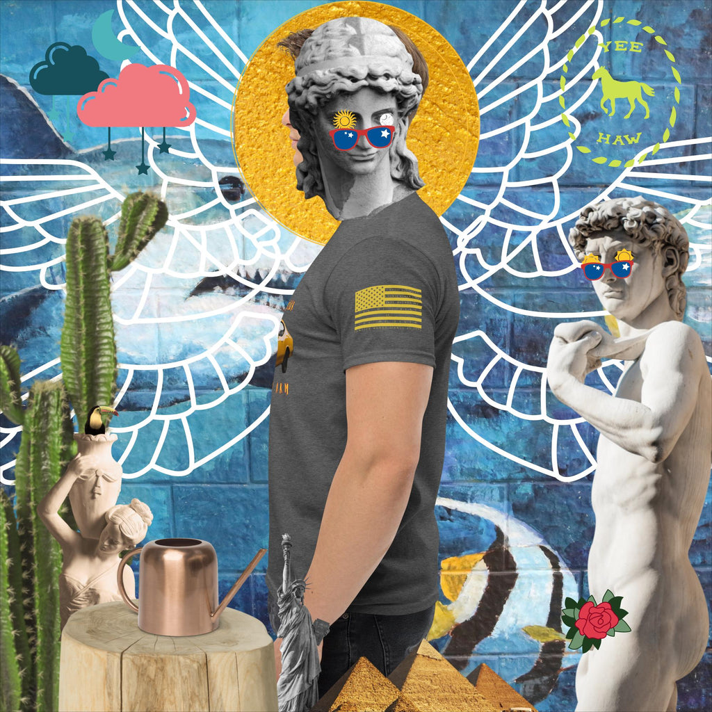 The 100% cotton men's classic tee will help you land a more structured look. It sits nicely, maintains sharp lines around the edges, and goes perfectly with layered streetwear outfits. Plus, it's extra trendy now!