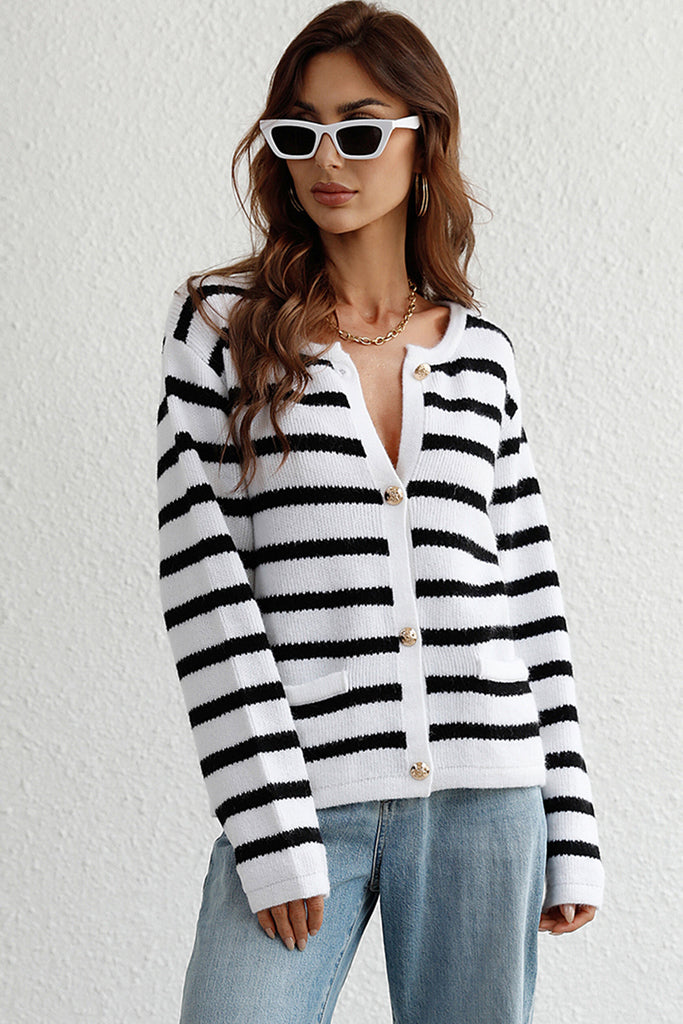 Striped Button Down Long Sleeve Cardigan